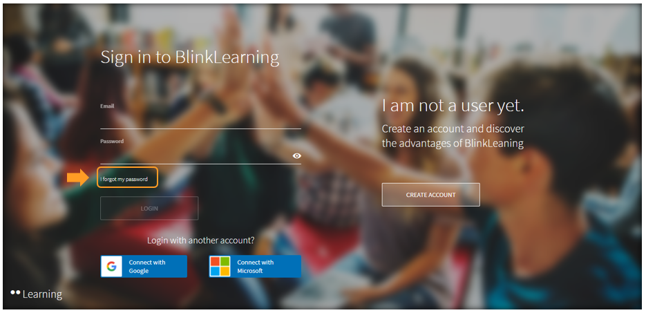 If you have an account created in BlinkLearning but you do not remember your password, you can recover it from the home page. Log in from your web browser at www.blinklearning.com, click on LOGIN and then on I forgot my password .